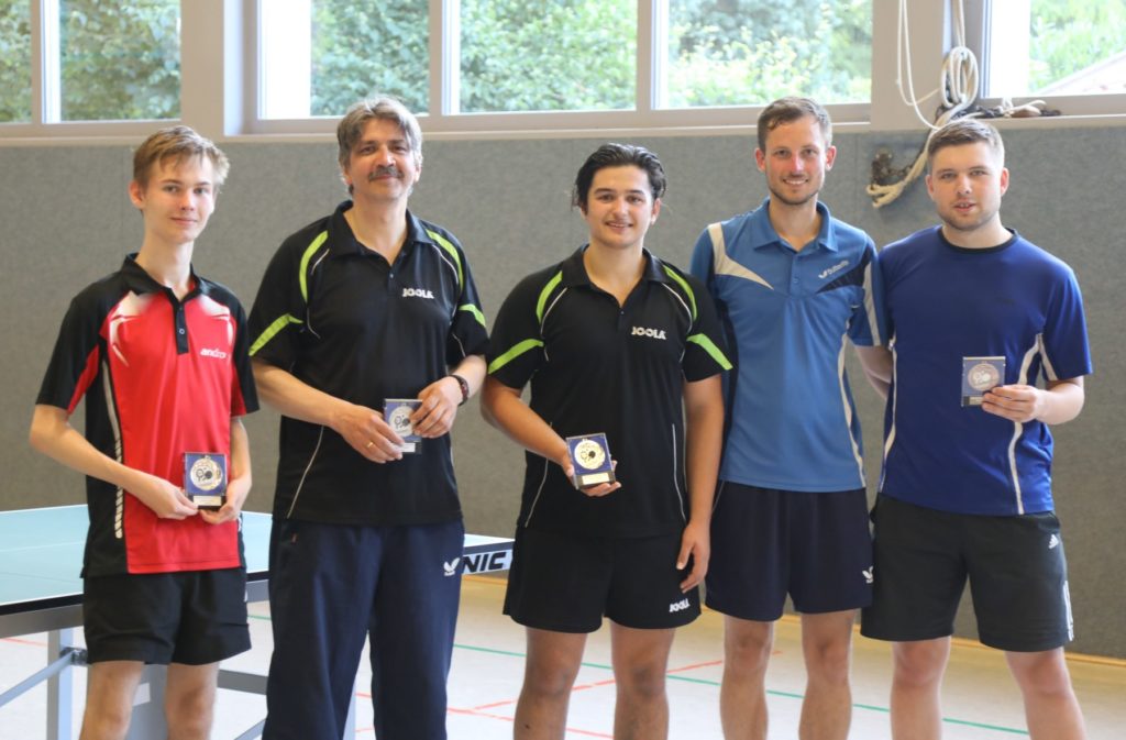 Marco und Sascha mussten 3 Punkte pro Satz Vorsprung geben und hatten somit das Nachsehen gegen die gut aufspielenden Gerald und Dennis. Im Spiel um den dritten Platz konnten sich Lars und Oliver mit einem 3:1 Sieg durchsetzen und sich somit den dritten Platz sichern. In einem äußerst spannendem Spiel konnten sich, die von Anfang an favorisierten, Daniel und Engin gegen Gerald und Dennis durchsetzen. Das Spiel endete nach mehreren, starken und hochklassigen Ballwechseln mit 3:2.