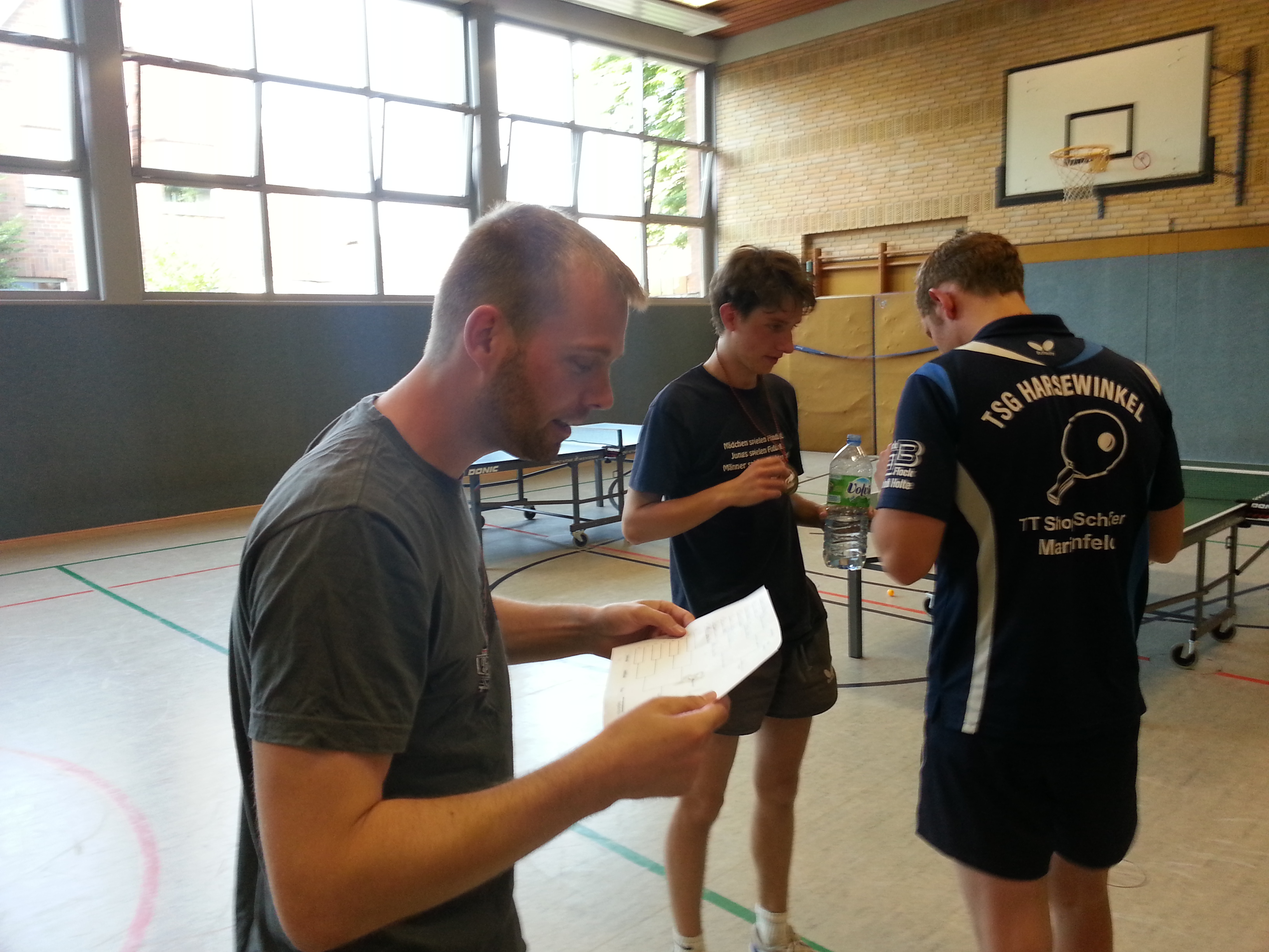 Es traten mit Lars Holtkamp, Sascha Mertens, Chris Klinksiek, Daniel Zegota und Marco Strubberg quasi alle Favoriten an welche noch regelmäßig bei der TSG spielen oder trainieren und noch Vereinsmitglieder sind. Das 16er Feld hatte bei 15 Teilnehmern auch nur ein Freilos welches sich Hans-Joachim Posdorfer sicherte. Die ersten Spiele lieferten keine große Überraschung und es setzten sich ausnahmslos die Favoriten durch. Sascha Mertens musste sich dann Lars Holtkamp mit 3:0 geschlagen geben, da sein Arm nicht ganz so gesund war. Tobias Klück musste, nach der Niederlage gegen Sascha Mertens direkt im ersten Spiel, den langen Weg über die Trostrunde gehen um sich im Spiel um den Einzug in das Trostrundenendpsiel gegen Lars Holtkamp mit 3:0 durchzusetzen. Lars Holtkamp hatte in der Hauptrunde 3:0 gegen Chris Klinksiek verloren welcher sich mit 3:0 Siegen einen schnellen und konditionssparenden Weg in das Hauptrunden Endspiel schuf. Daniel Zegota erreichte ebenfalls das Hauptrundenendspiel und gab auf seinem Weg dorthin nur einen Satz gegen Marco Strubberg ab.